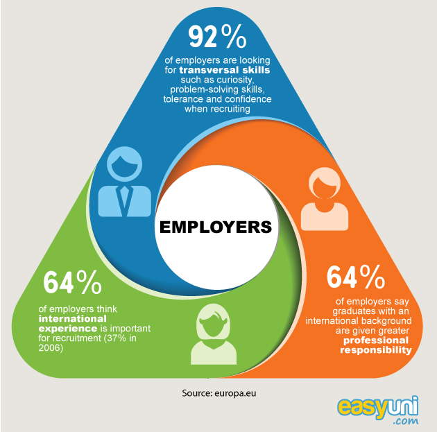 Both employability and personal development are aided by international exposure, and given their due significance by institutes of higher education. In fact, 83% of higher education institutions consider access to study mobility for students as the most important aspect of their internationalization strategy. Employers also believe that students who study abroad have better teamwork, communication, foreign language, analytical, decision-making, planning, and organizational skills. These links between studying abroad and increased employability can be traced back to the fact that cultures and practices vary across countries.