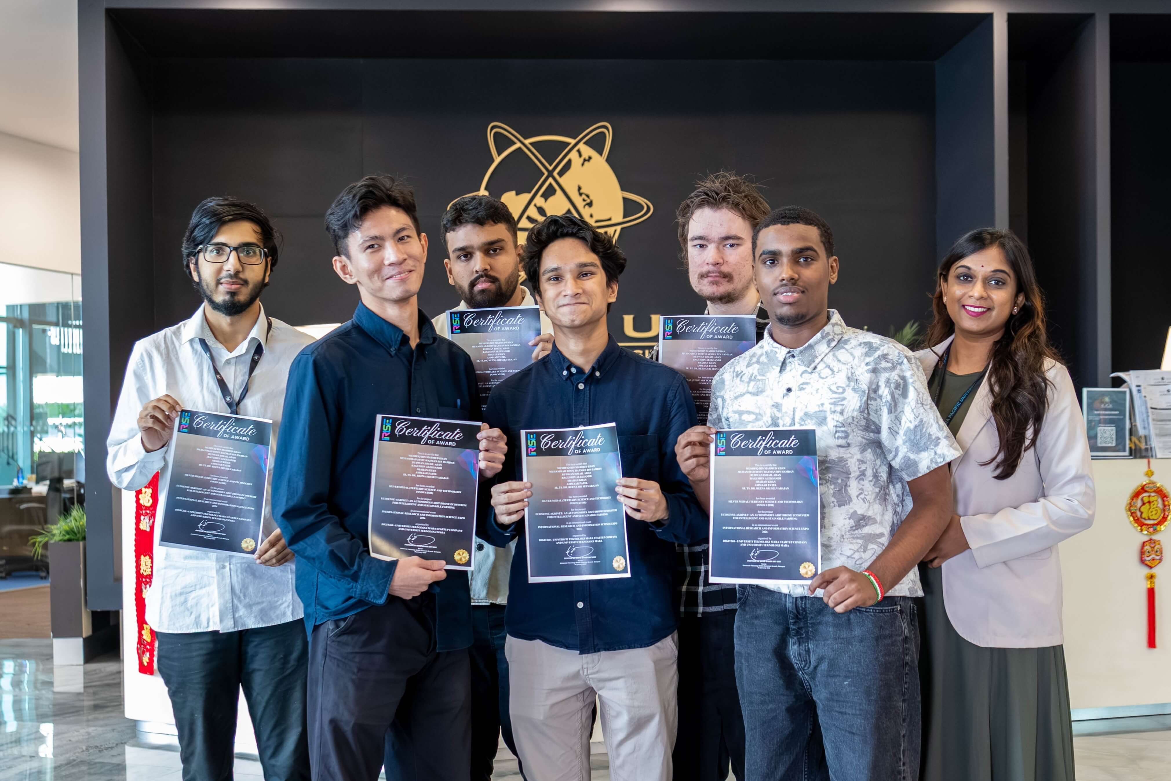 Securing the Silver award was a multidisciplinary team comprising Mechatronics Engineering, Electrical & Electronic Engineering and Computer Engineering students—Mushfiq Bin Mahmud Khan, Muhammad Diniy Hazman Bin Hamdan, Rudwan Ismail Adan, Ragushin Aleksandr, Shahan Khan and Ammaar Patel. Their project, EcoSense-AgriNet: Autonomous Farming and Data Analytics for Smart Agriculture, presented a forward-looking precision agriculture solution.