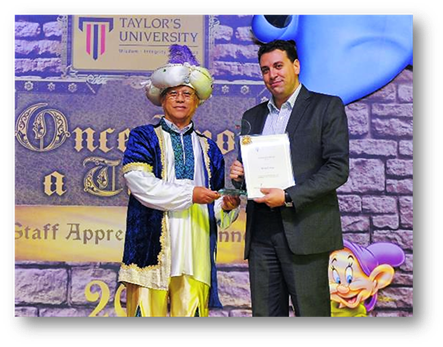 Ben Fatto (which is Italian for 'well done') to Dr. Paolo Mura (who is originally from Italy), for being recognised by the VC & President of Taylor's University, Emeritus Professor Dato’ Dr. Hassan Said with the Excellence in Research & InnovationAward. The citation for the award outlined his scholarly production and research-related activities at both national and international levels. Dr. Paolo is originally from Abruzzo (Italy), a region not too far from Rome. He obtained his Bachelor in Economics from the University ‘G. D’Annunzio’ (Italy), and PhD in Tourism from the University of Otago (New Zealand). He joined the School of Hospitality, Tourism and Culinary Arts back in 2010. The main focus of his research is on tourist behaviour, and his recent publications have appeared in top journals including the Annals of Tourism Research, Tourism Management and Current Issues in Tourism. He has also been the convenor and organiser of the BEST-EN Think Tank XIIIin 2013 and the 21st Asia Pacific Tourism Association (APTA) Conference in 2015. Moreover, Dr. Paolo has been an Invited Keynote speaker at the 1st International Forum in Leisure Education in Xi’an (China) and at the 6th India International Hotel, Travel & Tourism Research Conference in Delhi (India). Dr. Paolo Mura said that he felt, "Very honoured to be recognised for his contribution to research and innovation". For more about the research in the School of Hospitality, Tourism and Culinary Arts click here.